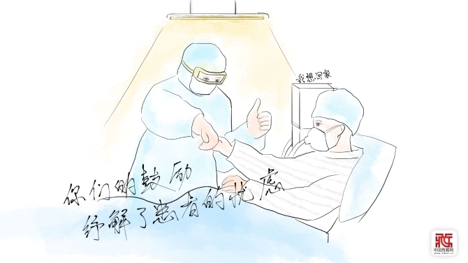我们用画笔记录下感人的瞬间:战“疫”前,战“疫”者们无声的誓言;确诊时,病人的忧虑;急救中,关心和爱护、责任与担当;出院后,感动和温暖……让我们向所有奋战在抗疫前线的医务工作者表示衷心的感谢,用绘画致敬抗疫英雄!(中国西藏网 文/王智霖 图/苏洋)