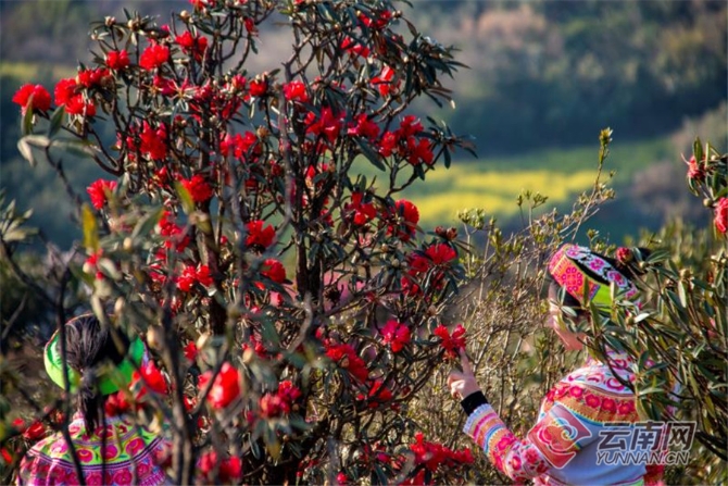 马街五里箐、牛头山一带的山花,颜色五彩斑斓,伴着初春的微风摇曳,乍一看上去,就仿佛是一个个穿着彝族传统服饰的少女,正在翩翩起舞,展示着这方水土养育下少数民族独有的风情。山花如人,人更如山花般纯粹、迷人、善良、温柔,这里的人,能歌善舞、勤劳善良、热情好客,为来往旅者留下深刻的马街印象。