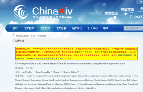 中国科学院西双版纳热带植物园等机构研究人员以预印本形式发布论文,他们收集了覆盖四大洲12个国家的93个新型冠状病毒样本的基因组数据(截至2月12日),通过对全基因组数据解析后发现,收到的样本包含58种单倍型,可以归纳为五组,包括3个古老的超级传播者单倍型(H1, H3和H13)和2个新的超级传播者单倍型(H56和mv2)。与华南海鲜市场有关联的患者样本单倍型都是H1这一类型或其衍生类型,而H3、H13和H38等更“古老”的单倍型来自华南海鲜市场之外,再次印证了华南海鲜市场的新冠病毒是从其他地方传入的观点。