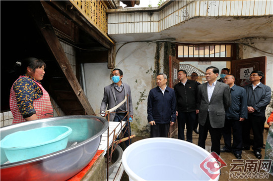 广南县珠街镇放羊村阿多里村民小组是深度贫困村。沿着崎岖陡峭的山间小路,陈豪一行攀上山坡,实地查看小水窖、坝塘蓄水情况和饮用水水质,走进群众家中了解供水情况。陈豪强调,饮水安全事关民生福祉,是脱贫攻坚的硬指标。要迅速采取措施,加快水利工程建设,建立健全农村饮水安全长效保障制度和季节性缺水保障机制,教育引导群众节约用水,确保农民群众饮水安全。