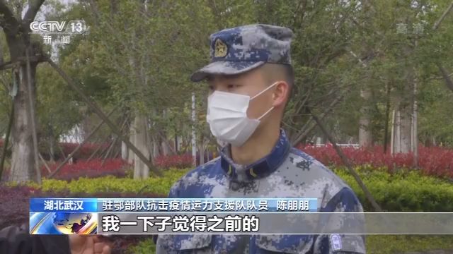 驻鄂部队抗击疫情运力支援队队员 陈朋朋:在路上,地方车辆向我们鸣笛、竖大拇指,市民和交警们给我们敬礼,我一下子觉得之前的点点滴滴的努力都是值得的,也明白了当兵的意义。