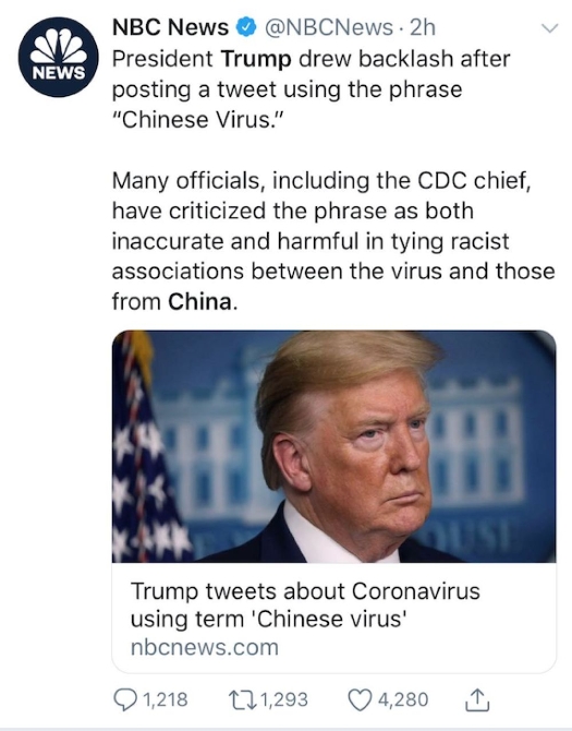 随着某些美国政界人士在推特上把新冠病毒称为“中国病毒”,对中国大搞污名化,完全背离了世界卫生组织和国际社会明确反对将病毒同特定国家和地区相联系的立场,好多美国人坐不住了。