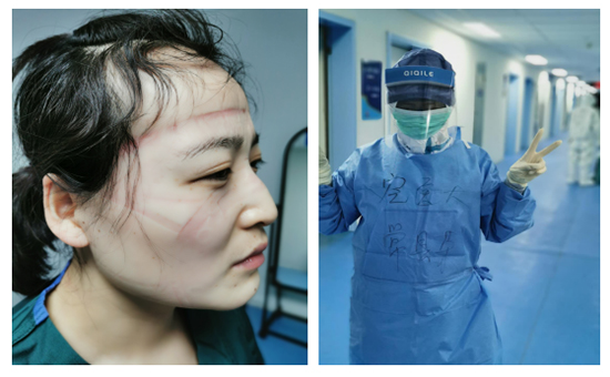 第一次下班后看到脸上被勒出来了深深的痕印,第一次从红区出来的时候止不住想要呕吐,摸着脸上的“沟壑”,我偷偷地流了泪,当时心想:我这是要毁容了吗?可是我还没有男朋友呢……