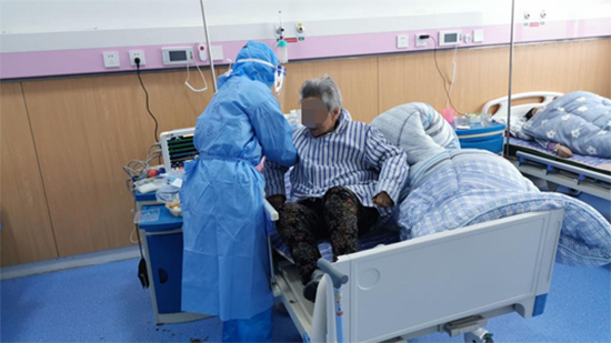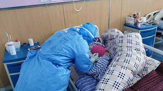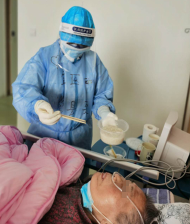 我所在的湖北妇幼保健院光谷院区感染二科是重症科室,病人基本都是生活不能自理的老奶奶、老爷爷。除了日常的护理工作---输液、动静脉采血、插胃管、导尿管、检测呼吸机、抢救病人、病房的洗消、垃圾的处理外,还要喂饭、喂药,换尿不湿。因为语言不通(老人家说武汉方言),还要连说带比划,半天才能搞明白爷爷奶奶们想要表达的意思。一个班下来,浑身都是汗快要累瘫了,但是耳边老爷爷老奶奶的话语,“孩子,谢谢你”,那时候我的心里倍感欣慰,感觉浑身都是劲。