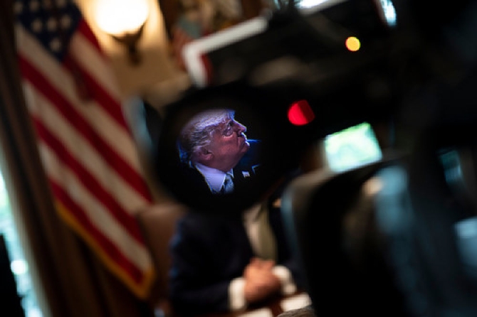 3月17日,美国总统特朗普在华盛顿白宫出席会议。新华社/法新