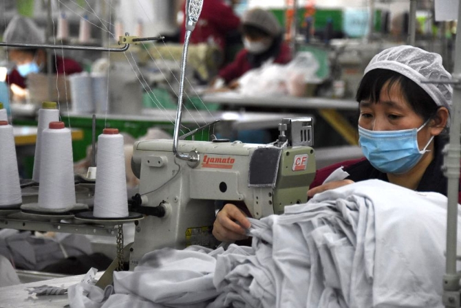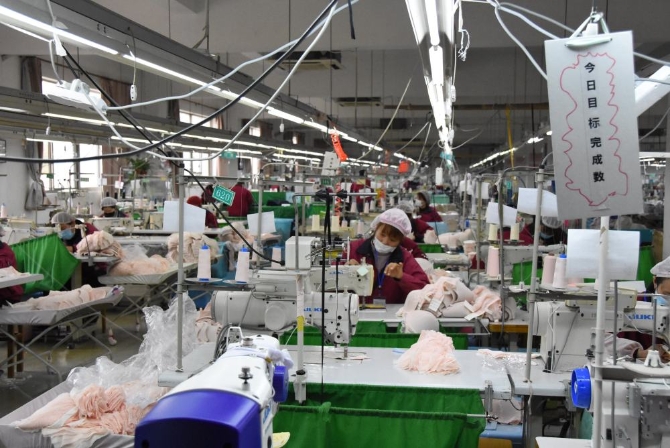 3月16日,员工在浙江蒂娜尔时装有限公司的生产车间内忙碌。新华社发(崔力摄)