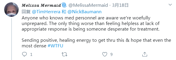 网友Melissa Mermaid:任何了解医务人员的人都知道我们毫无准备。相比因为缺乏适当的应对措施而感到无助更糟糕的,是成为一个迫切需要治疗的人。