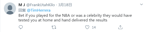网友M J:我打赌,如果您在NBA打球或者是名人,他们会到家中为您进行测试,然后亲自将结果送到您手中。