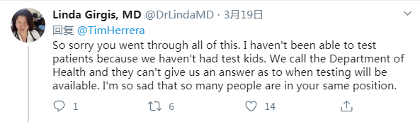 网友Linda Girgis:很抱歉你经历了这一切,我无法对病人进行测试,因为我们还没有对孩子进行测试。我们打电话给卫生部,他们不能告诉我们何时可以进行检测。我很难过有这么多人和你一样。