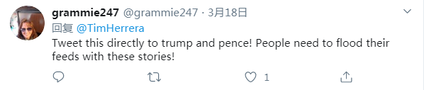 网友grammie247:把此推文直接发送给特朗普和彭斯!这些新闻应该像洪水一样推给他们!