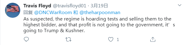 网友Travis :就像大家怀疑的那样,这个政府正在囤积检测试剂并把它们卖给出价最高的人,而获得的利润并没有收归政府,而是进了特朗普和库什纳的腰包。