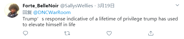 网友Forte_BelleNoir:特朗普的回应表明他的一生是利用特权抬高自己的一生。