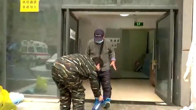 记者 张志军:“我现在所在的位置是武汉优抚医院,云南省援助湖北省第五批医疗队所在的驻点医院,这里也是我们第五批医疗队负责的病区。现在在我身后,我们的一些医疗队员正在整理装备,即将进入到舱内,对最后一名病人进行进一步的诊断以及送别。我们现在也将跟他们进入到病区里面去看一下里边儿的情况。我们了解一下,这名病人今年76岁,他已经入住医院了有将近一个月的时间。今天是他出院的日子,我们也跟着医务人员进去了解一下里边的情况。”