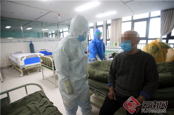 当日15时,记者在武汉市优抚医院重症隔离病房见到了两个小时后将出院的患者——76岁的佘大爷。当医护人员叮嘱其出院的注意事项时,老人紧紧握住云南省第五批援助湖北省医疗队员、优抚医院呼吸六科主任艾琼的手,连声说谢谢。老人告诉记者,自从入院接受治疗后,医护人员每天像对待亲人一样照顾自己,得知今天将要离别,心里既高兴又难过。