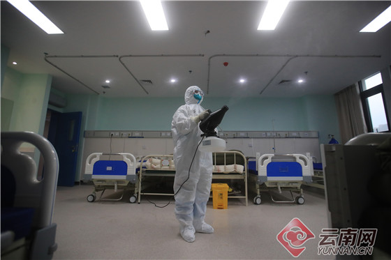 云南省第五批援助湖北省医疗队队员对病房进行消杀。陈飞/摄