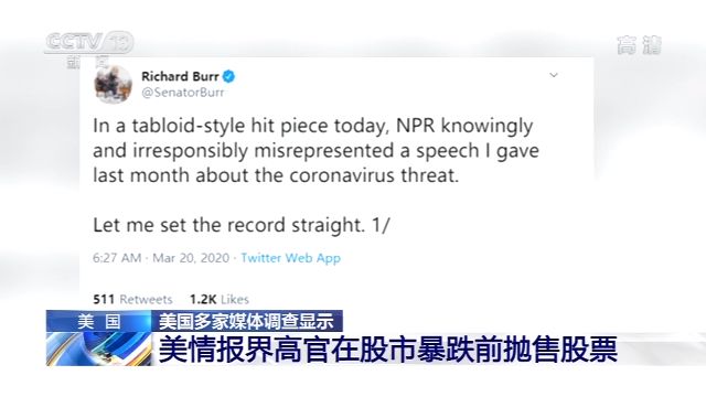 而除了对疫情的严重性知情不报外,理查德·伯尔还被曝在疫情暴发、股市暴跌前,就已经大量抛售股票。