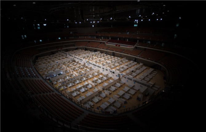 3月8日,武汉体育中心方舱医院送走最后一批痊愈患者,正式休舱。这是休舱的武汉体育中心方舱医院。新华社记者 肖艺九 摄