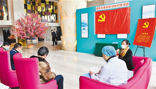 “康复驿站临时党支部每周都会开展主题党日活动。通过开展这样的活动,不仅融洽了医患人员的关系,也有助于康复人员的心理健康和身体康复。”