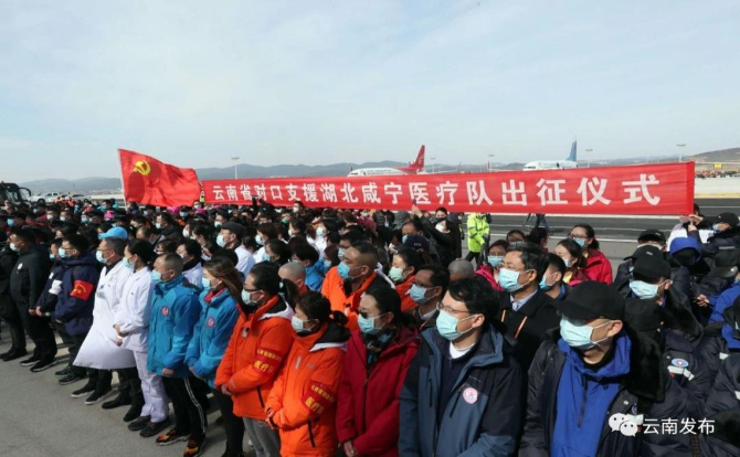 1月27日大年初三,138名医务人员组成的首批云南援助湖北医疗队,紧急赶赴咸宁。
