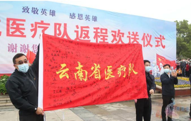 近两个月的坚守和鏖战,云南援助湖北医疗队彰显了“一方有难、八方支援”的中华民族优良传统,体现了“岂曰无衣、与子同袍”的大爱境界。