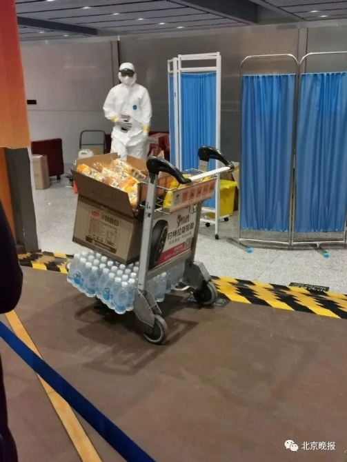 4、机场给回来的大家准备了几箱水,人太多拿光了,不到两小时就又运来了新的水。