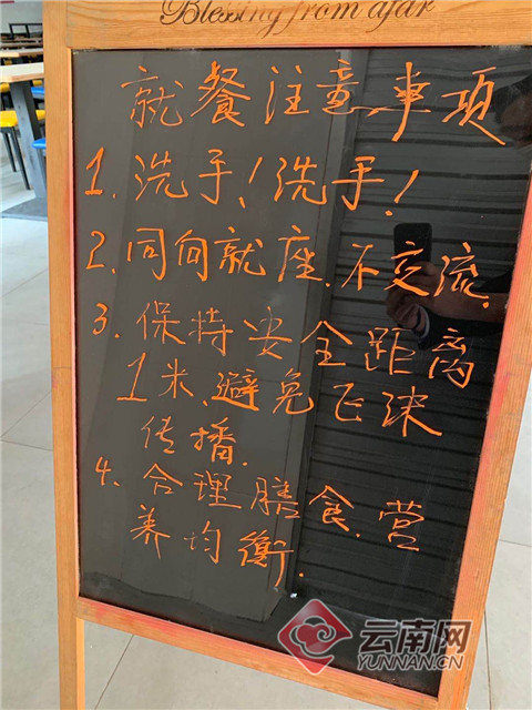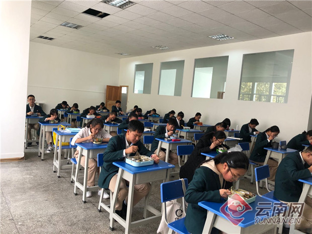 昆明理工大学附属中学采用分区域就餐方式,并在原有食堂的基础上,临时增加了报告厅作为学生就餐点,同时要求学生在就餐是保持相应的间距,避免人员聚集。