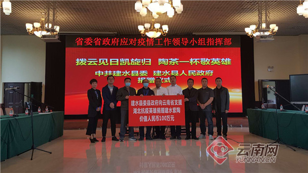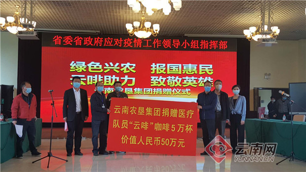 经过近2个月的连续奋战,云南援助湖北医疗队圆满完成任务,平安归来。为向抗疫英雄致敬,表达对他们的关心、问候,我省社会各界积极送温暖、献爱心。3月23日,云南农垦集团、建水县在省委省政府应对疫情工作领导小组指挥部分别向云南援助湖北医疗队员捐赠5万杯“云咖”咖啡饮品和1500个建水紫陶工艺品。