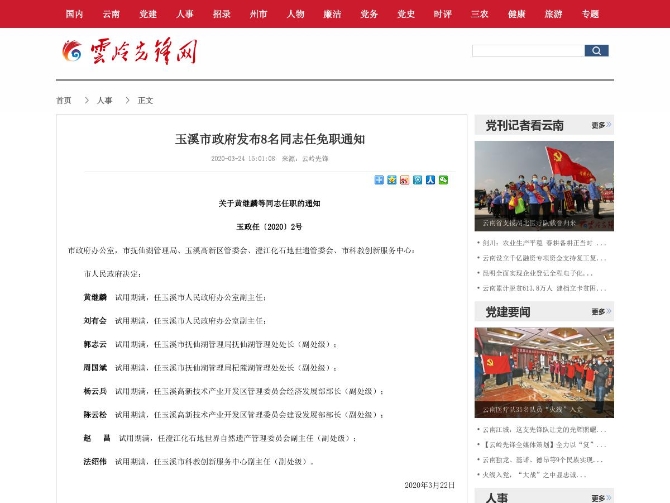 法绍伟 试用期满,任玉溪市科教创新服务中心副主任(副处级)。
