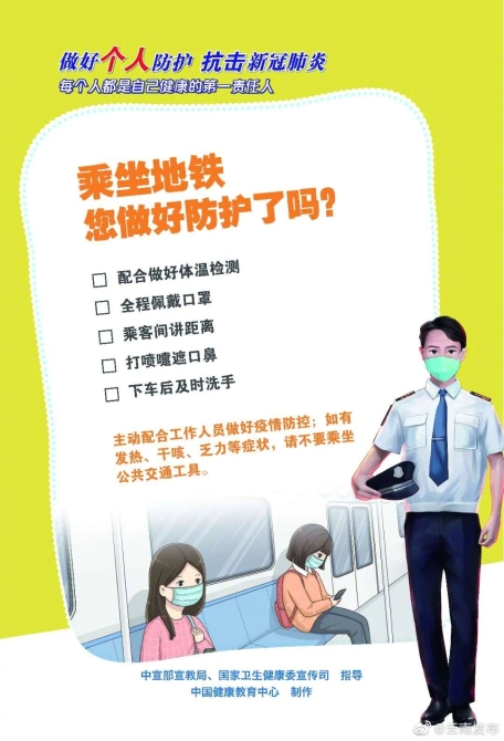 昆明信息港讯 机器人小明 【办公场所、外出购物、乘坐地铁…您做好防护了吗?】每个人都是自己健康的第一责任人!做好个人防护,抗击新冠肺炎,从我做起!转扩!(@健康中国)