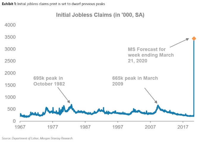 随着疫情的扩大,美国多州采取了日趋严格的出行限制措施,其造成的经济影响也越来越明显。美国劳工部19日的数据显示,截至3月14日一周,美国首次申领失业救济人数环比大幅攀升7万人至28.1万人,增幅达到两年半以来最大。随着美国各州和地方政府逐步下令关闭各类场所,摩根斯坦利预测美国上周(截至21日)首次申领失业救济的人会达到340万人。