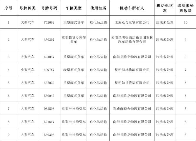 (三)所属车辆交通违法突出的外省籍“两客一危”运输企业曝光交通违法情况: