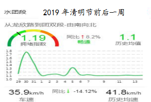 从2019年清明节通行情况看,预计2020年清明节通往龙凤公墓的水团段(龙泉路至龙风公墓)车流量在节前一周周六(3月28日)及清明节第一天(4月4)日12时前后达到高峰。