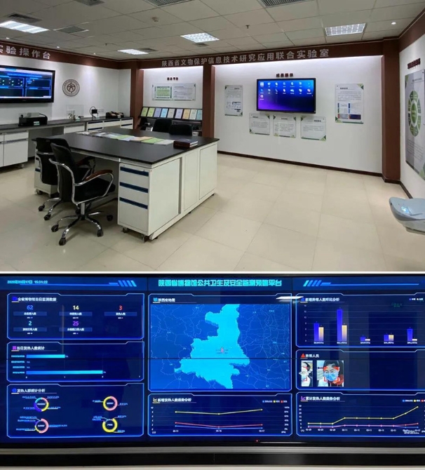 该系统以陕西省文物局直属的陕西历史博物馆、秦始皇帝陵博物院、西安碑林博物馆、汉景帝阳陵博物院四家陕西大型博物馆观众聚集性公共卫生场所的防疫监测点现场实时采集数据为基础,即时上传至陕西省文物保护研究院的“预防性保护数据监测预警平台”系统,通过人工智能系统进行数据比对,快速甄别出各类潜在传染性疫情的危险因素,实现四家省直属博物馆公共卫生安全防疫“一张网”。