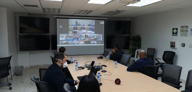 这是3月23日晚在多米尼加首都圣多明各拍摄的视频工作会议现场。中国驻多米尼加使馆供图