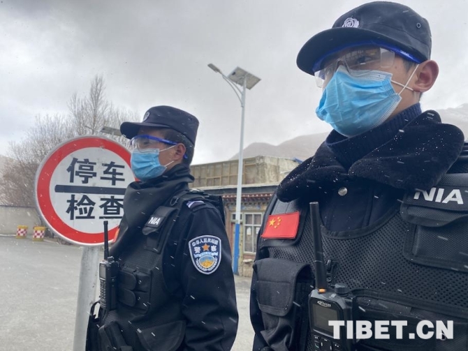 图为嘎拉边境检查站民警奋战在抗疫一线