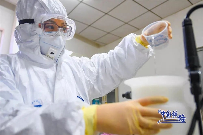 为了完成繁重的站车消毒任务,17年前参与抗击非典的中国铁路北京局集团公司北京铁路疾病预防医学研究中心的王铁燕,再次身披“战甲”,带领23个姐妹组成一支站车消毒“娘子军”,每天奔忙在北京各大火车站;中国铁路南昌局集团公司疾病控制所消杀科科长杨波,一直奋战在单位26天没有回家;中国铁路沈阳局集团公司沈阳车辆段集便器维修工蒋明轶主动申请担当广州、成都、昆明等方向的客车集便器维修任务,常常在车厢底部一干就是五六个小时。