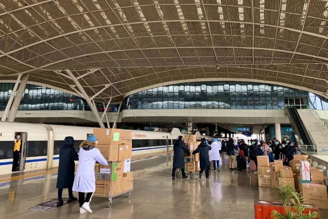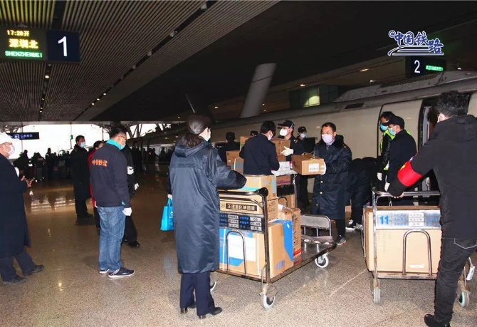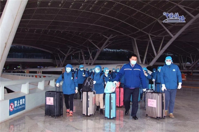 一批批医护人员和生活物资通过钢铁大动脉源源不断运往湖北各个地区。