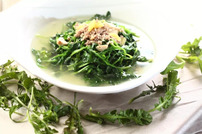 荠菜一般只吃嫩叶部分,因此做羹汤之前也得先摘去根和老叶。