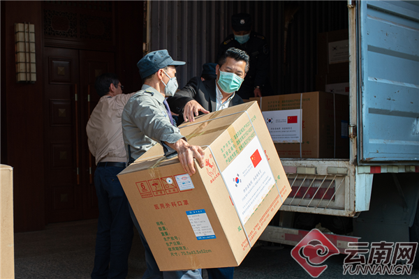 这些礼物是云南省人民政府向韩国忠清南道、仁川市、全罗北道,伊朗吉兰省,意大利洛迪省、翁布里亚大区、皮埃蒙特大区等新冠肺炎疫情严重的我省国际友城援助的医用物资。