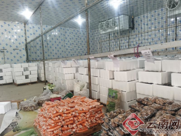 确定了蔬菜类型,项目组通过村委会,发动各电商站点寻找蔬菜资源。这时候的各乡镇“一乡一品”发挥了作用,先后在武定县白路、田心、东坡、狮山镇等筹集到38吨各类蔬菜,再分门别类进行储存。将土豆、胡萝卜、大蒜、姜等常温下易于存放的蔬菜正常入库,莲花白、娃娃菜、香菇等易损菜品则放入了冷库集中存放,另外还有青辣椒和茄子两类菜品数量很大,联系好农户以后,将每天需要的量送到物流分拨中心,分类规整,解决蔬菜储存问题。