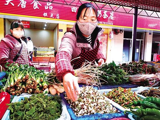 卖野菜的李桃花也经常采野菜。记者蒋琼波/摄