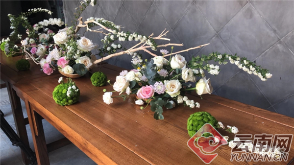 现场还同步展示了斗南鲜切花、仿真花、干花、盆栽、盆景、园林园艺、精油等丰富的花卉文创产品,配合着新时代文明实践中心的布景,将文明实践贯穿到了花卉艺术培训整个活动。