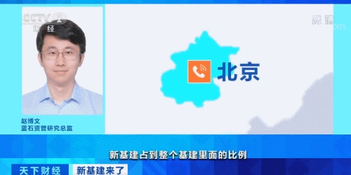 蓝石资管研究总监赵博文:新基建占到整个基建的比例大概是10%到15%这样一个比例,2020年新基建的规模大概是2到3万亿这样一个规模。