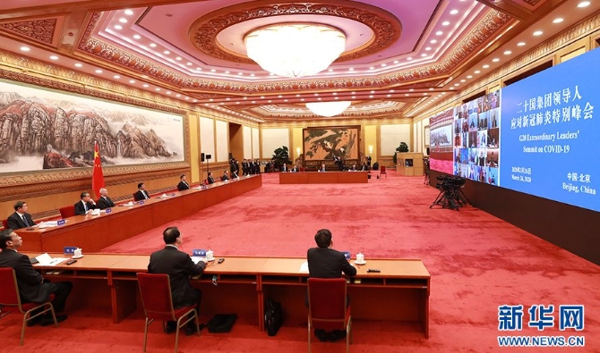 G20领导人应对新冠肺炎特别峰会当天以视频会议方式举行。与会各国领导人在会后发表的联合声明中说,我们正在采取迅速且有力的措施,支持经济,保护劳动者和企业,尤其是中小微企业;我们正在向全球经济注入超过5万亿美元资金,作为有针对性的财政政策、经济措施和担保计划的一部分,以抵消大流行病对社会、经济和金融的影响。