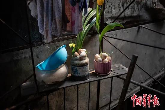 3月24日,武汉市大董社区一小区楼梯拐角处,居民养的花草。中青报·中青网记者 李隽辉/摄