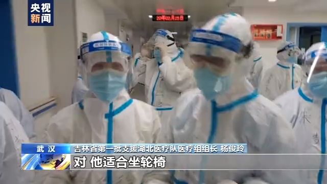 吉林省第一批支援湖北医疗队医疗组组长 杨俊玲:他是一个72岁的半身不遂的患者,所以一会儿我们先把他扶到轮椅上。