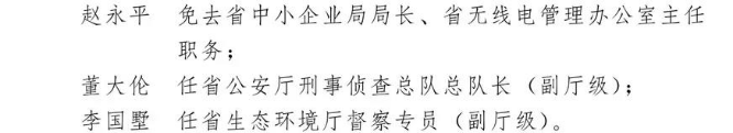 关于赵永平等三名同志任免职的通知