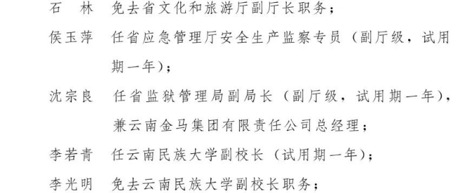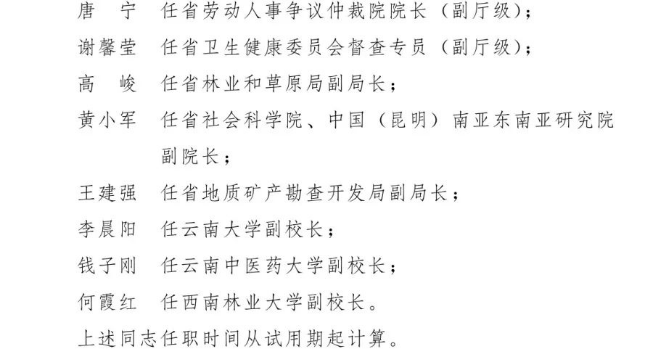 云南省人民政府发布24名干部任免职通知