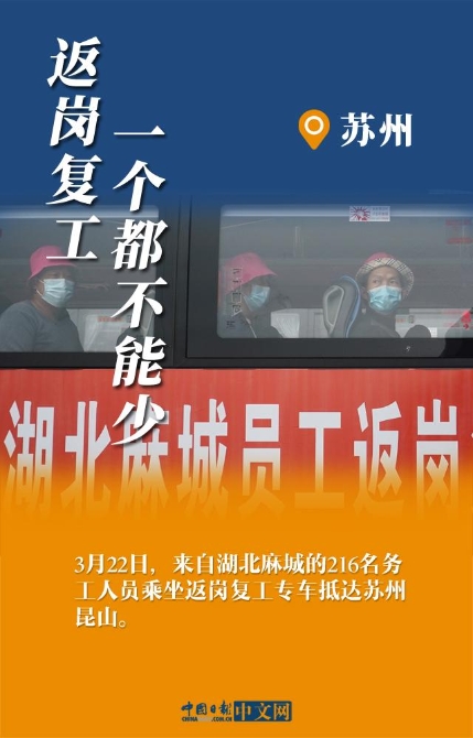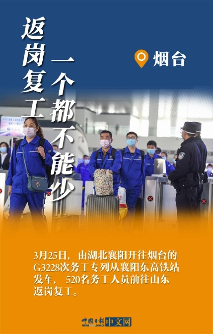 当前,国内疫情防控形势积极向好。3月25日零时起,湖北省除武汉市以外地区正式解除离鄂通道管控,鄂籍务工人员陆续踏上返岗之路。连日来,各地政府各企业纷纷出台措施,为务工人员返岗复工“保驾护航”,采取 “点对点、一站式”等办法,通过专列、专车、包车等方式,成规模、成批次组织务工人员尽快返岗安全复工,确保返岗复工,一个都不能少!