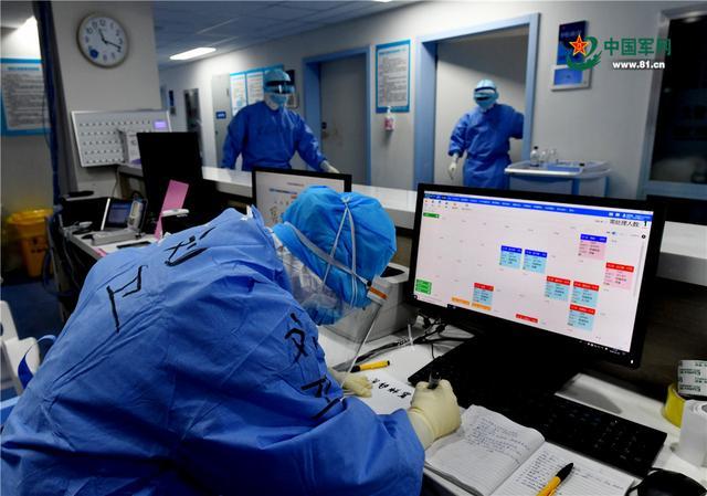 病区里忙碌的身影,诠释了医护人员勇挑重担、敢打硬战和不怕疲劳连续作战的优良作风。解放军报记者 王传顺 摄